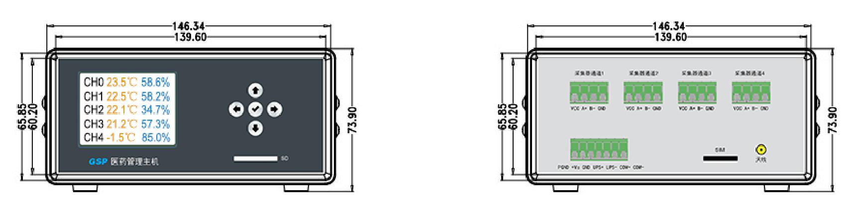 GSP醫藥溫濕度監控系統管理主機是一款應用在醫藥庫房環境監測上的硬件設備,上接一臺客戶現場計算機(服務器),下接多只溫濕度采集器,或溫度采集器。