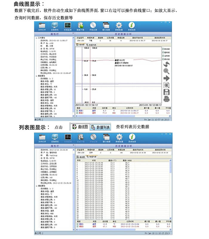 i500系列智能溫濕度數(shù)據(jù)記錄儀配置專業(yè)的記錄數(shù)據(jù)分析處理軟件Flashlink,標(biāo)準(zhǔn)Windows XP/ Windows7界面,可與智能記錄儀進(jìn)行通訊,設(shè)置智能記錄儀的工作狀態(tài),讀取智能記錄儀采集的數(shù)據(jù)。其主要功能為,在Windows 下,對采集的數(shù)據(jù)可進(jìn)行列表、繪制曲線、設(shè)置工程單位、求平均值、峰值和實(shí)時(shí)顯示功能。數(shù)據(jù)能按TEXT格式輸出,也能進(jìn)入EXCEL電子表格或?qū)iT的軟件進(jìn)行數(shù)據(jù)處理,繪制棒圖、餅圖,進(jìn)行曲線擬合等。
